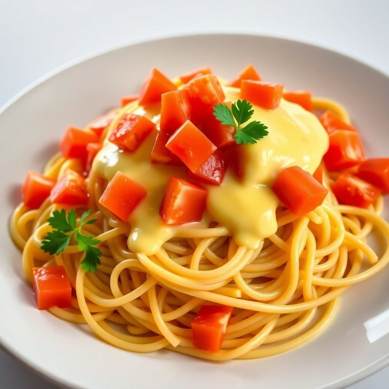 Spaghetti mit Tomaten und cremiger Hollandaise