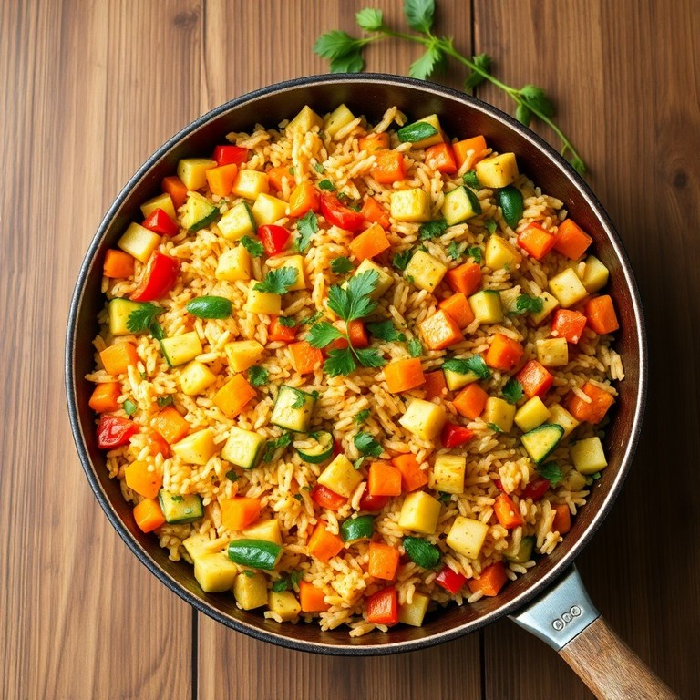 Eine herzhafte und gesunde Gemüse-Reis-Pfanne, die perfekt für jeden Tag ist. Sie kombiniert frisches Gemüse mit aromatischem Reis und ist einfach zuzubereiten.