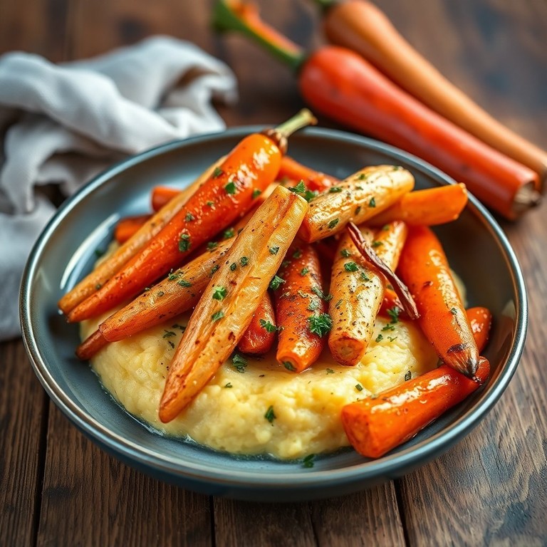 Geröstete Karotten und Pastinaken auf cremiger Polenta