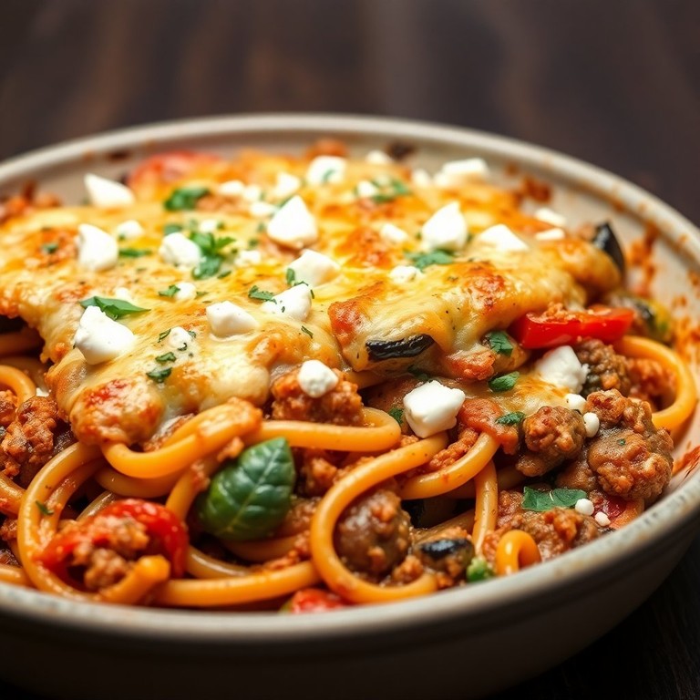 Mediterraner Nudelauflauf mit Hackfleisch und Schafskäse