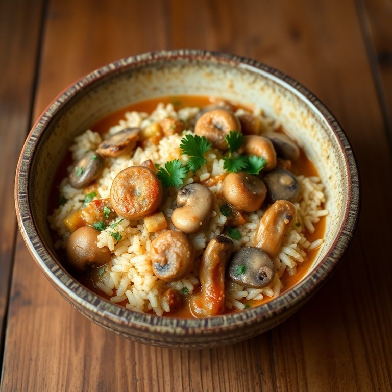 Ein cremiges Reisgericht, das die Aromen von Pilzen und Gemüse vereint.