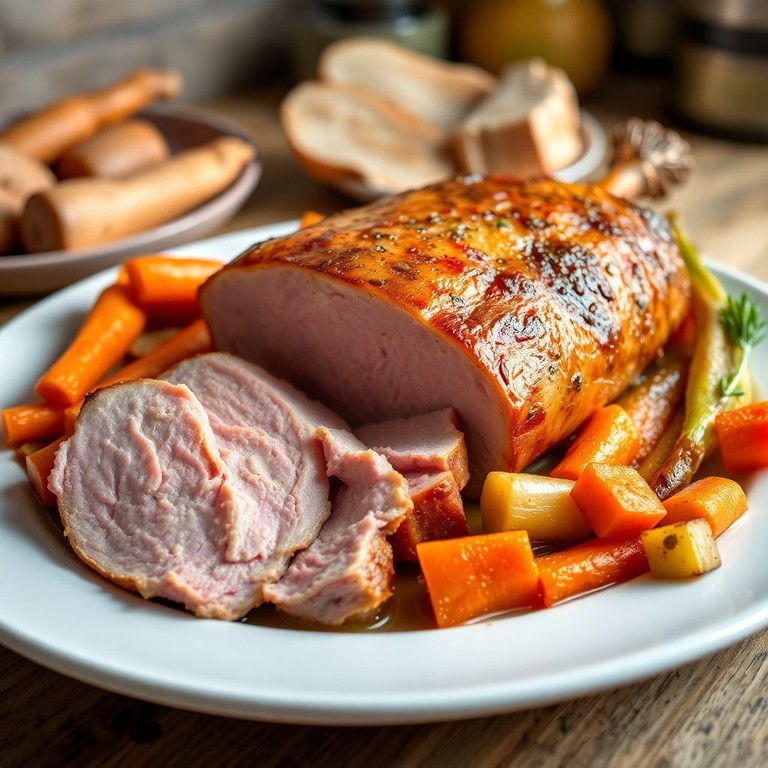 Ein saftiger Braten, perfekt gegart mit aromatischem Gemüse. Dieses Gericht vereint zartes Tafelspitzfleisch mit einer köstlichen Mischung aus Ofengemüse, das in einer aromatischen Brühe und Rotwein geschmort wird. Ideal für ein festliches Abendessen oder einen besonderen Anlass.