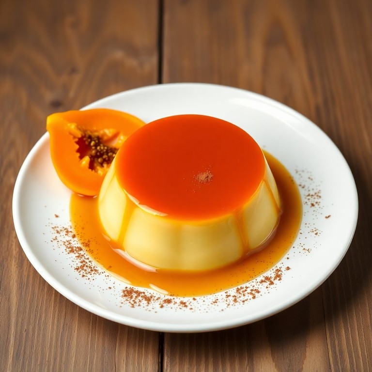 Un postre cremoso de flan con leche evaporada y un suave sabor a vainilla, realzado por la dulzura de la papaya. Perfecto para cualquier ocasión especial o como un dulce capricho.