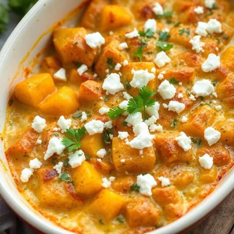 Ein herzhaftes und cremiges Gericht, das die Süße des Kürbisses und die Sättigung der Kartoffeln mit dem salzigen Geschmack des Feta-Käses kombiniert. Perfekt für den Herbst!