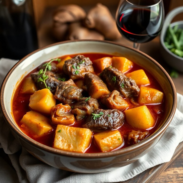Herzhafter Wildgulasch mit Kartoffeln und Zwiebeln