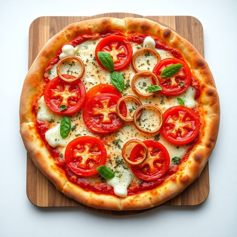 Diese herzhafte Tomaten-Zwiebel-Pizza ist eine köstliche und schnelle Option für ein Abendessen. Der knusprige Teig wird mit saftigen Tomaten und aromatischen Zwiebeln belegt, während der geschmolzene Käse für den perfekten Geschmack sorgt. Ideal für alle, die eine einfache, aber geschmackvolle Pizza genießen möchten.