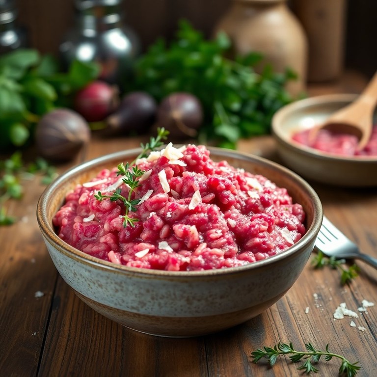 Ein cremiges Risotto, das durch die leuchtende Farbe und den einzigartigen Geschmack der Roten Bete zum Leben erweckt wird.