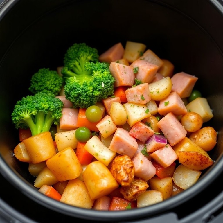 Airfryer-Gemüsepfanne mit Schinken und Kartoffeln