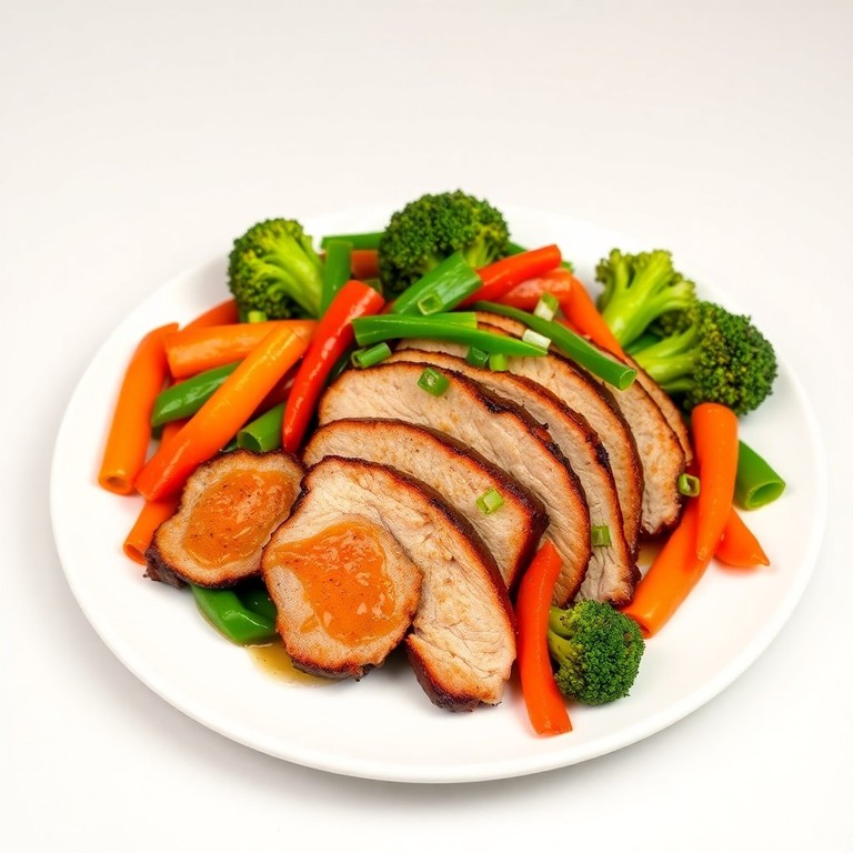 Zartes Entenfleisch, knusprig gebacken, serviert mit einer bunten Mischung aus chinesischem Gemüse. Diese chinesische Ente ist einfach zuzubereiten und beeindruckt mit ihrem reichen Geschmack und der Vielfalt der Aromen.