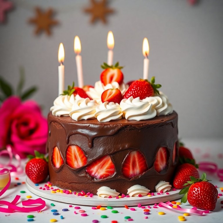 Bolo de Aniversário de Chocolate com Recheio de Morango