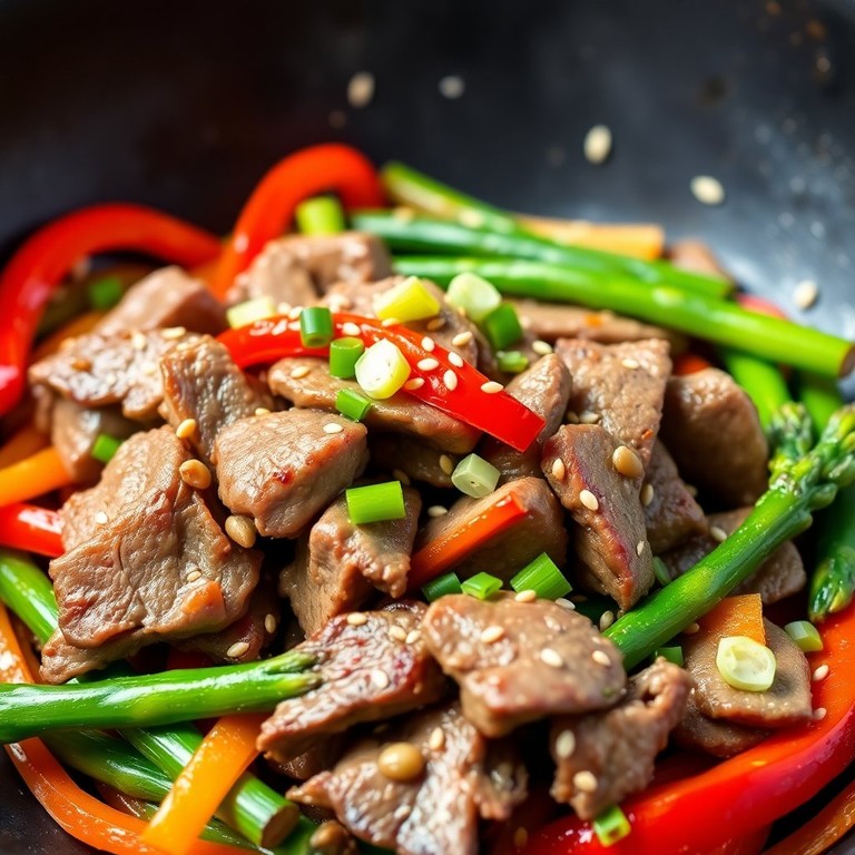 This Steak and Asparagus Stir-Fry is a quick and easy dish that combines tender slices of steak with crisp asparagus and sweet red bell pepper. It's perfect for a high-protein, low-carb meal that's both delicious and satisfying. The simple marinade enhances the flavors, while the cornstarch slurry adds a light glaze to the dish. Ready in just minutes, it's an ideal choice for a busy weeknight dinner.