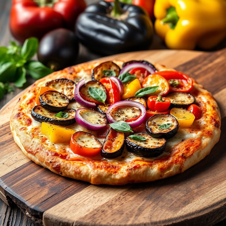 Une délicieuse pizza garnie d'aubergines grillées et de légumes colorés, parfaite pour un repas léger et savoureux. Cette recette végétalienne est idéale pour ceux qui recherchent une alternative saine et sans produits d'origine animale.