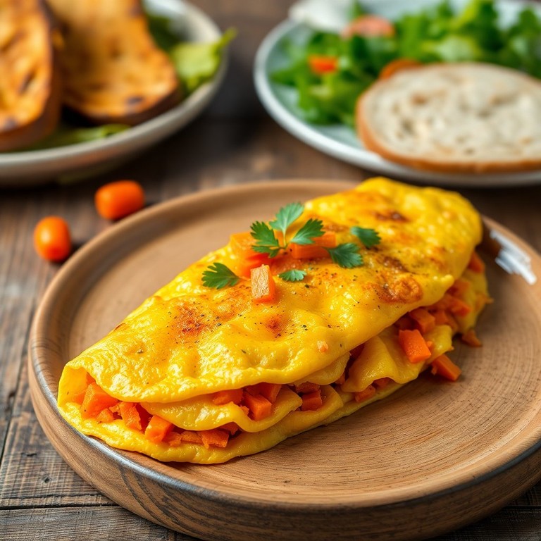 Una esponjosa tortilla francesa con un toque de zanahoria para un sabor único. Perfecta para un almuerzo ligero o como tapa en una reunión.