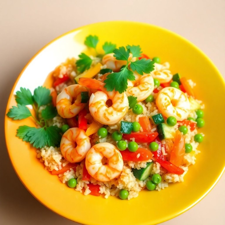 Garnelen-Reis-Pfanne mit buntem Gemüse und zartem Aroma