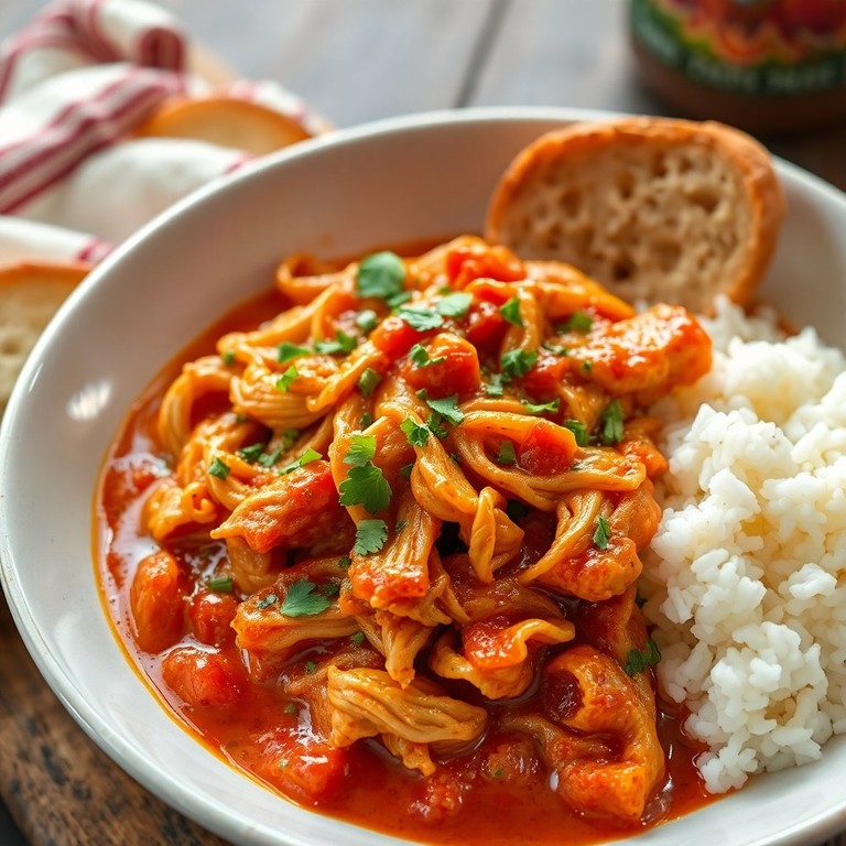 Um peito de frango cozido e desfiado misturado com um delicioso creme de leite e molho de tomate, temperado com ervas frescas, perfeito para servir em sanduíches ou como acompanhamento de arroz.