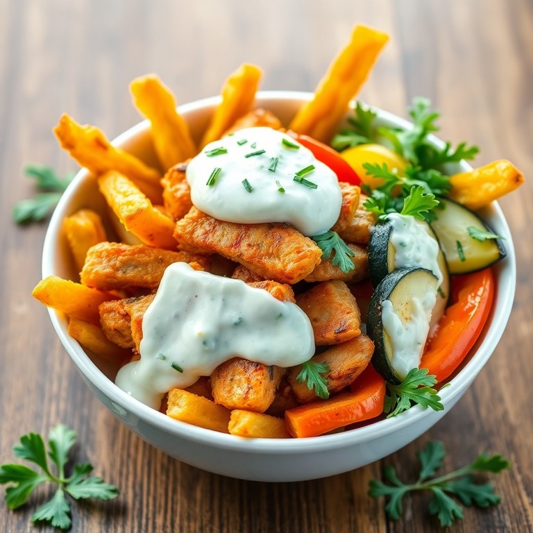 Eine leichte und dennoch sättigende Mahlzeit mit gegrillten Hähnchenbruststreifen, Süßkartoffel-Pommes und einem erfrischenden Rucola-Salat mit Joghurt-Dressing. Ideal für eine schnelle und gesunde Küche.