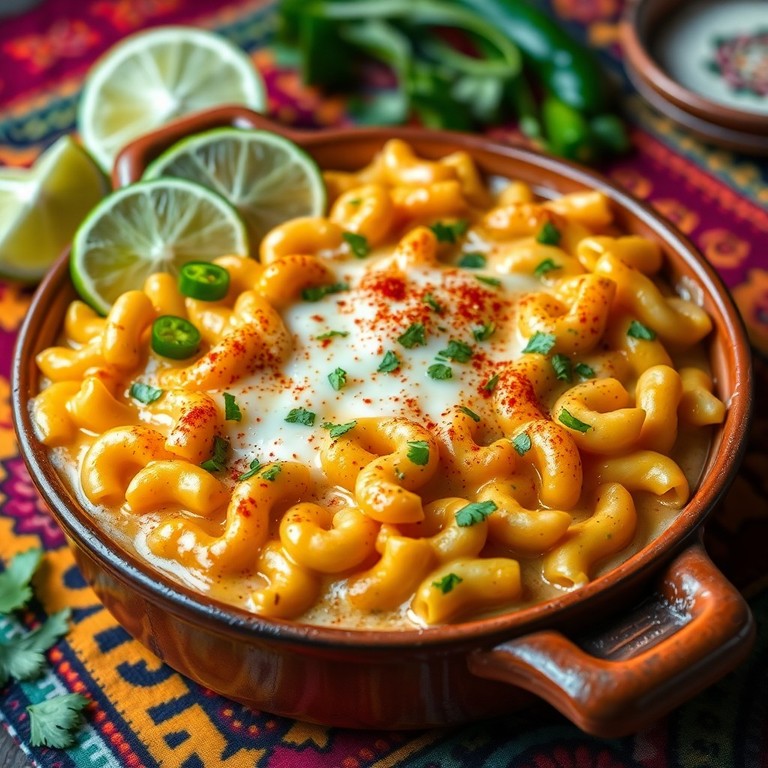 Mac and Cheese trifft auf mexikanische Aromen! Jalapeños, Knoblauch und Zwiebeln werden zu einer feurigen Sauce verarbeitet, die mit Mozzarella überbacken wird. Ein unvergessliches Geschmackserlebnis.