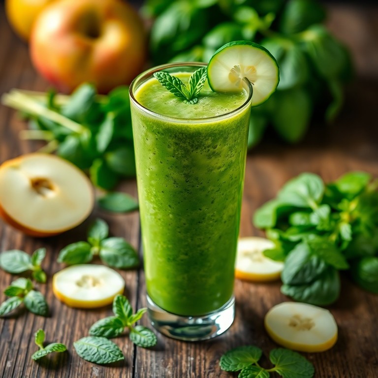 Dieser cremig-süße Smoothie kombiniert die Aromen von Apfel und Gurke mit einem Hauch von Minze. Die Zugabe von Spinat sorgt für eine Extraportion Vitamine, ohne den Geschmack zu beeinträchtigen.