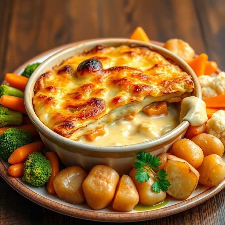 Schnitzelbruch-Gratin mit Kantenschinken-Soße