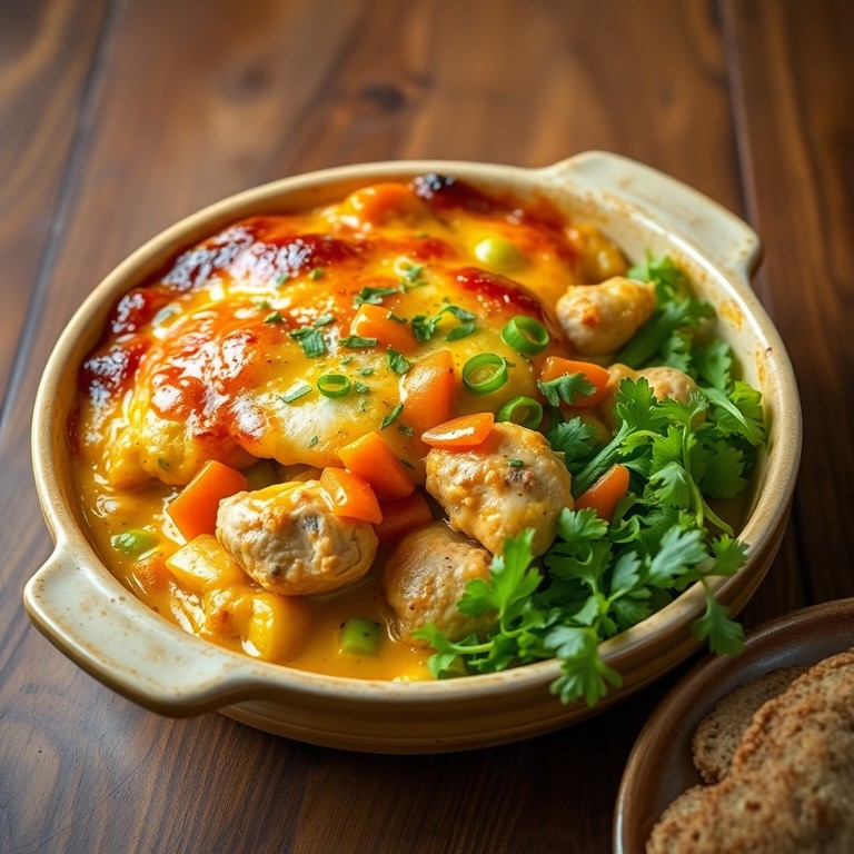 Herzhafter Hähnchen-Kartoffel-Auflauf mit Curry-Sahne