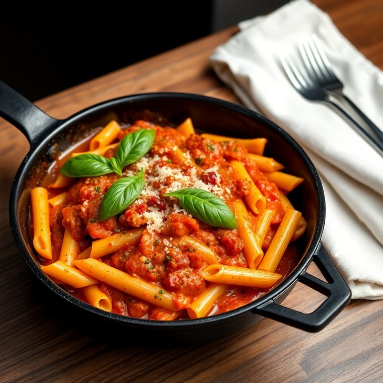 Ein schnelles und preiswertes One-Pot-Rezept für den Feierabend, das mit einfachen Zutaten wie Pasta, Tomaten und italienischen Gewürzen eine würzige und herzhafte Mahlzeit zaubert.