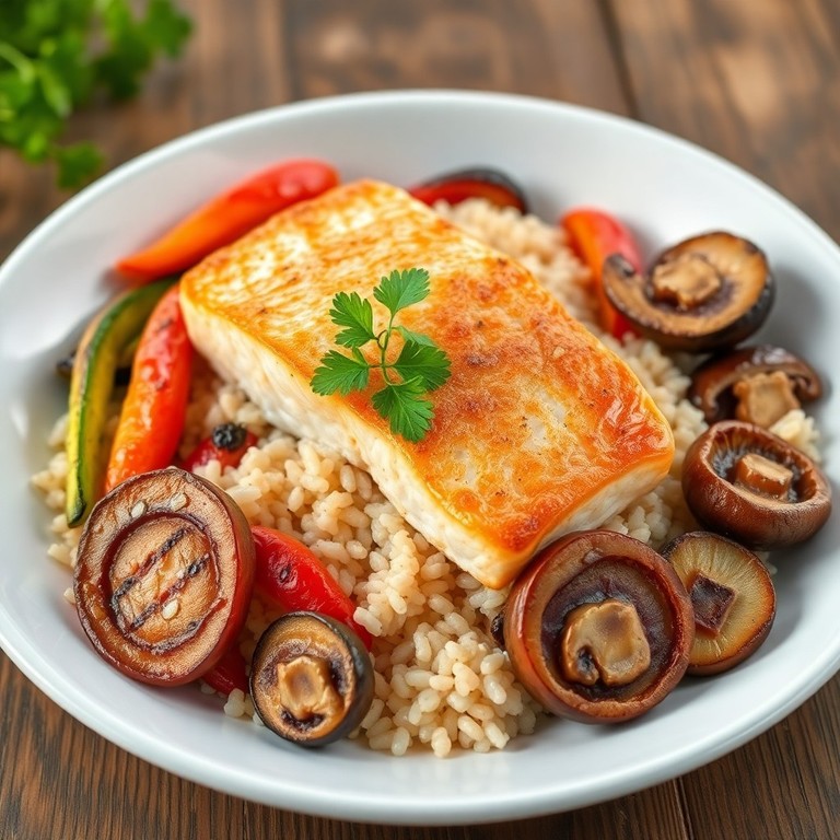 Een snelle en smakelijke vismaaltijd met rijke omega-3 vetzuren, gegrilde seizoensgroenten en volkorenrijst voor een volle smaak en goede vezelinname. Perfect als gezonde maaltijd voor het hele gezin.