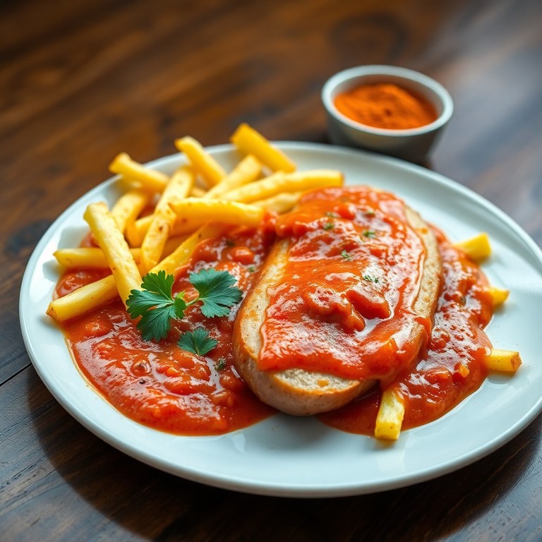 Klassisch deutsche Bratwurst in würziger hausgemachter Currysauce, serviert mit knusprigen, frisch zubereiteten Pommes. Ein schnelles und sättigendes Gericht, das Berliner Streetfood-Charme direkt auf den Teller bringt.
