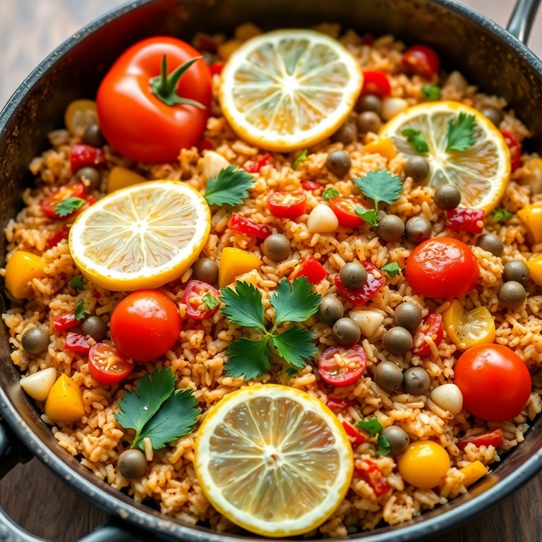 Eine aromatische spanische Wildreis-Gemüsepfanne, verfeinert mit Kapern, die dem Gericht eine angenehme, leicht salzige Note verleihen. Dieses vegetarische Gericht kombiniert mediterrane Aromen mit einer zusätzlichen Geschmackstiefe durch die Kapern.