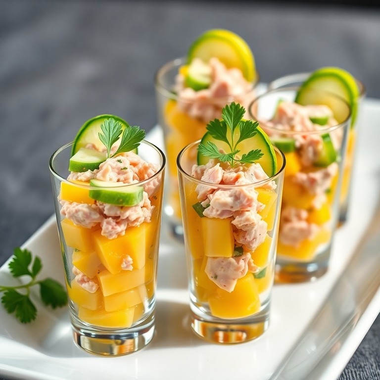 Une recette fraîche et légère de verrines aux saveurs tropicales, combinant la douceur du maïs, la texture fondante du thon et la fraîcheur croquante du concombre. Parfaites pour une entrée originale ou un apéritif estival, ces verrines allient simplicité et élégance.