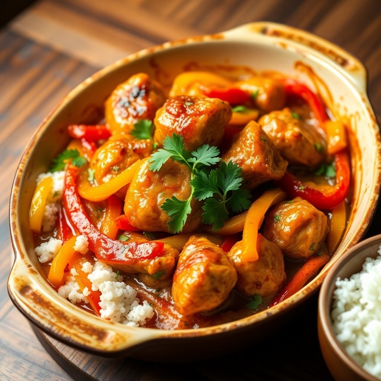 Ovenschotel zoete kip met paprika en uien