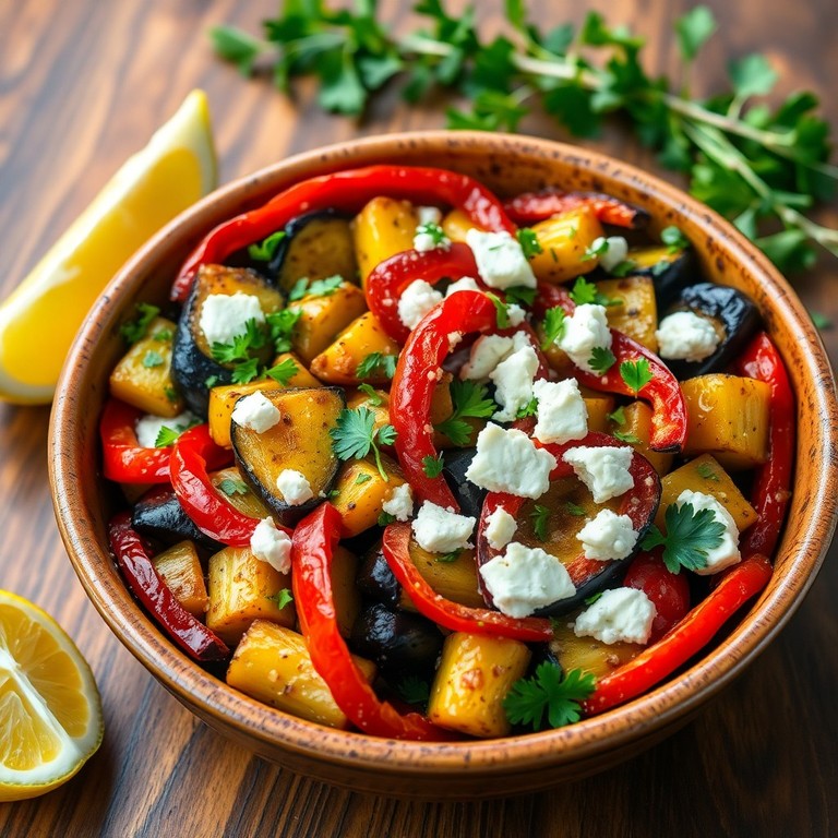 Ein aromatisches, im Ofen geröstetes mediterranes Gemüsegericht mit Zucchini, Aubergine und Paprika, verfeinert mit frischen Kräutern und einem Hauch Zitrone. Schnell zubereitet in nur 30 Minuten, eignet sich diese Gemüsepfanne perfekt als leichte Hauptmahlzeit oder Beilage.