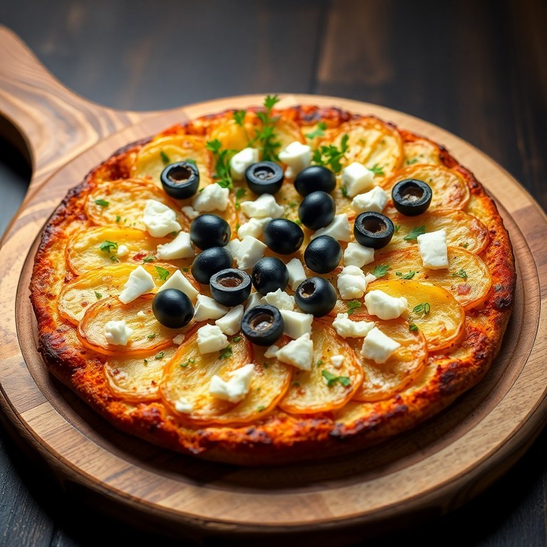 Diese südländische Kartoffel-Pizza kombiniert knusprige Kartoffelscheiben als Basis mit mediterranen Kräutern, schwarzen Oliven und würzigem Feta. Schnell und einfach im Ofen zubereitet, ist sie eine köstliche Alternative zur klassischen Pizza und bringt sommerliche Aromen auf den Tisch.