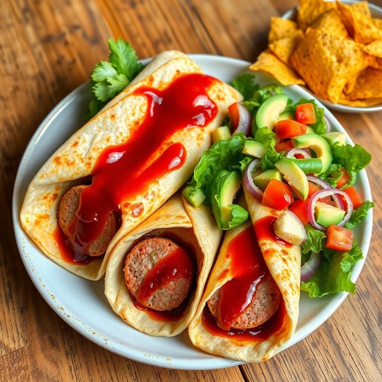 Wraps de Salchicha con Salsa Barbacoa y Ensalada Verde