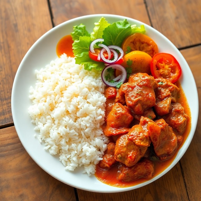 Pollo Guisado con Arroz Blanco y Plátanos Maduros Fritos