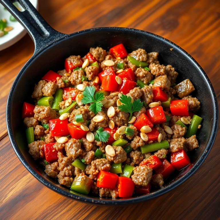 Hackfleisch-Paprika-Pfanne mit Sojabohnen und Erdnüssen