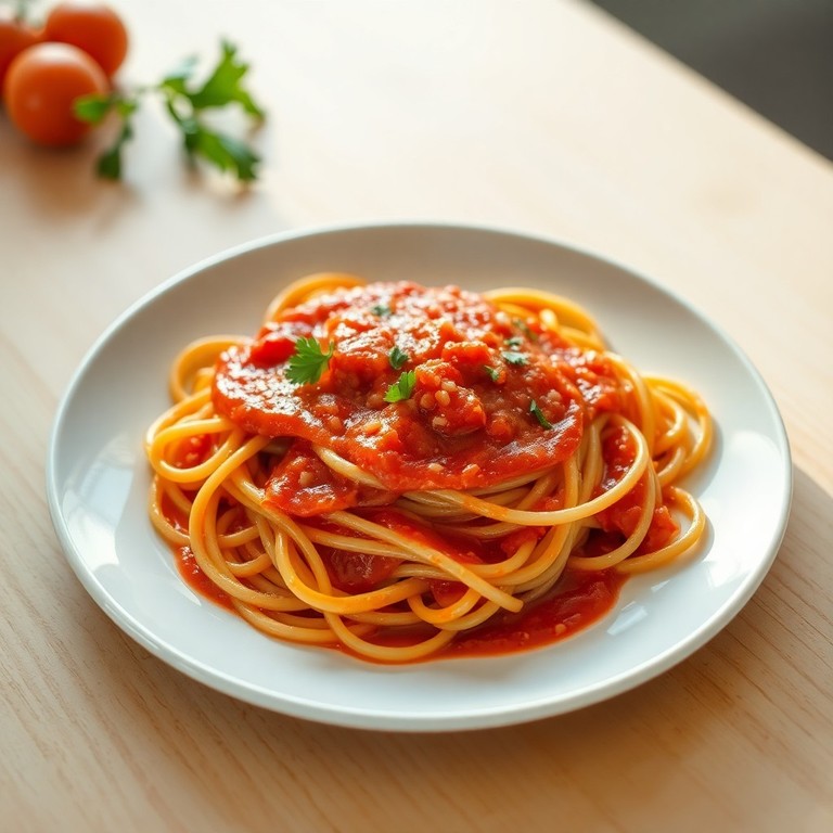 Espaguetis cocidos directamente en una salsa suave de tomate con un toque justo de sal, pensados para una comida rápida, saludable y fácil de preparar para niños. Esta receta en una sola olla simplifica la cocina y garantiza un plato nutritivo y sabroso.