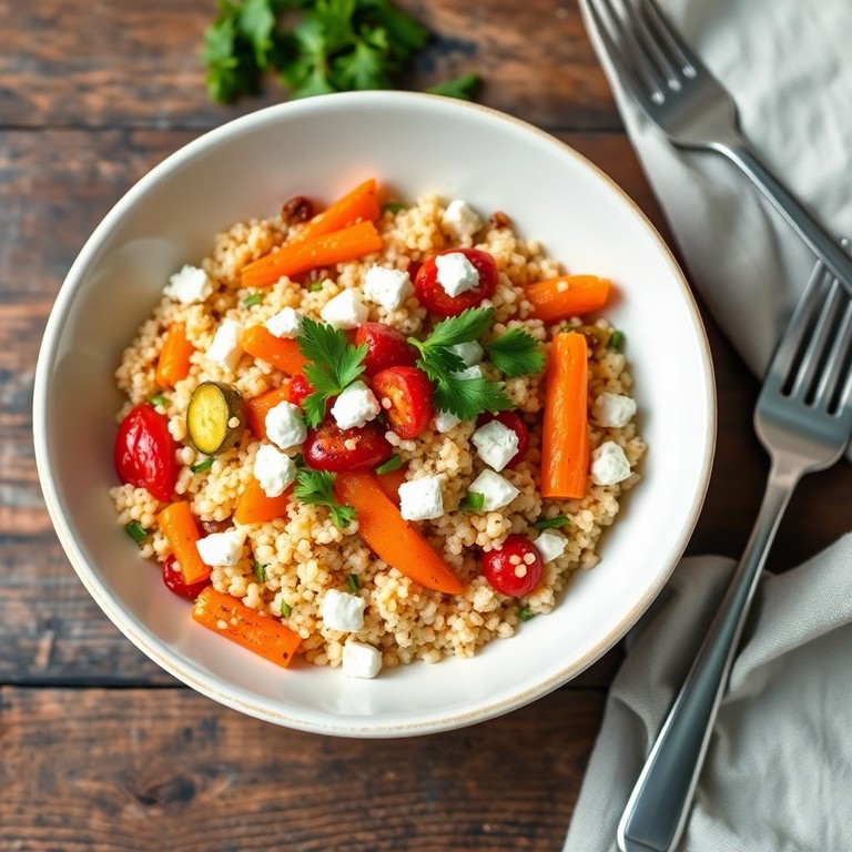 Una ensalada nutritiva y colorida que combina quinoa esponjosa con pimientos, calabacín y zanahorias asados, aderezada con un toque de limón y ajo. Perfecta para una comida ligera y rica en fibra, ideal para quienes buscan recetas saludables y llenas de sabor.