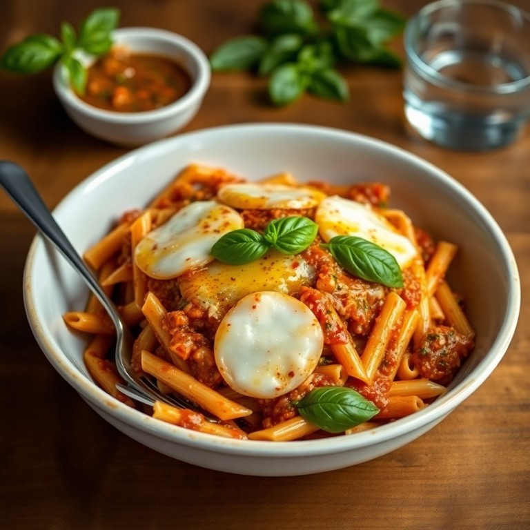 Ein würziges und schnelles Nudelgericht mit hausgemachtem Pesto alla Calabrese, das durch knusprig geschmolzenen Mozzarella und aromatische Gewürze wie geräuchertes Paprikapulver und Sriracha-Sauce verfeinert wird. Die Kombination aus cremiger Pasta und würziger Schärfe macht dieses Gericht zu einem perfekten Genuss für jeden Tag.