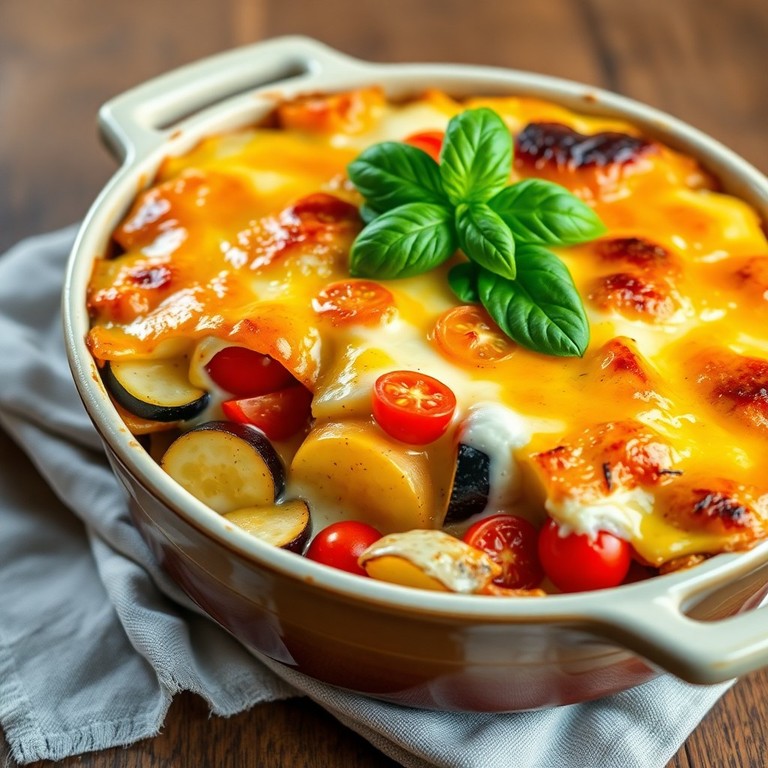 Ein leichter, vegetarischer Auflauf mit frischen Sommergemüsesorten und Kartoffeln, ideal für heiße Tage. Dieses Gericht kombiniert zarte Kartoffelscheiben mit aromatischem Gemüse und einer cremigen Käseschicht, die im Ofen goldbraun gebacken wird.