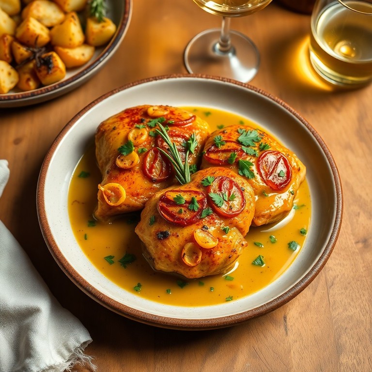 Un delicioso plato tradicional español donde el pollo se cocina lentamente en abundante ajo, aceite de oliva y vino blanco, resultando en una carne jugosa y una salsa aromática perfecta para una comida sencilla y llena de sabor en solo 30 minutos.