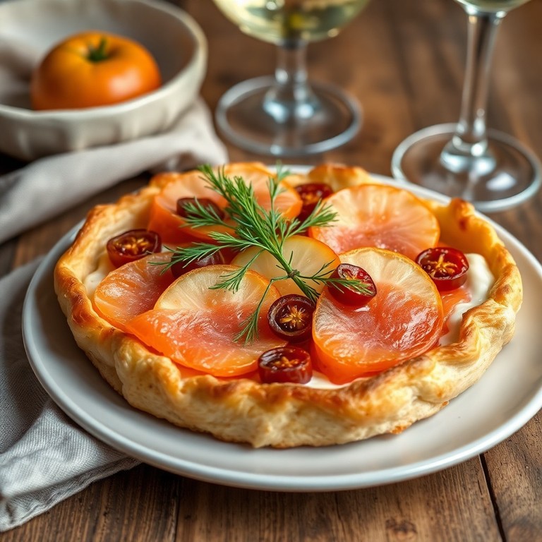 Une tarte rustique aux saveurs riches, associant saumon fumé, mascarpone crémeux, pommes légèrement caramélisées et tomates confites. Parfaite pour un repas convivial et élégant, elle marie fraîcheur et douceur avec une texture fondante.
