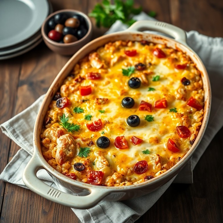 Ein herzhafter Auflauf mit zartem Hähnchen, aromatischem Reis, frischen Tomaten und mediterranen Kräutern. Dieses Gericht vereint die Aromen des Mittelmeers in einem gemütlichen Ofenauflauf, perfekt für ein entspanntes Abendessen mit Familie oder Freunden.