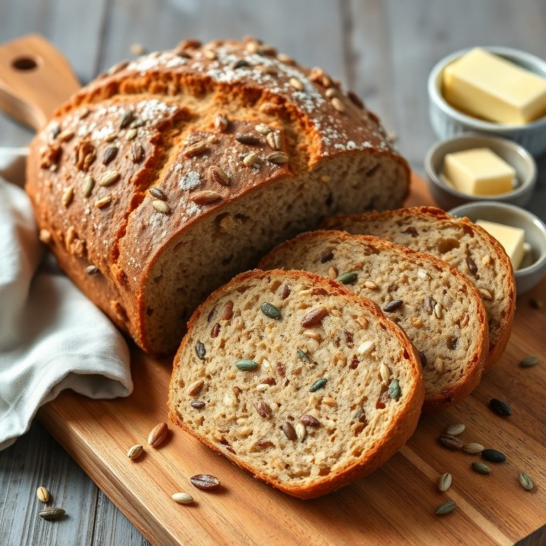 Dieses vollwertige Sauerteigbrot kombiniert nahrhaftes Vollkornmehl mit einer Mischung aus gehackten Nüssen und knackigen Samen. Das Brot überzeugt durch seine herzhafte Kruste, saftige Krume und einen aromatischen Geschmack. Perfekt für ein gesundes Frühstück oder als sättigender Snack.