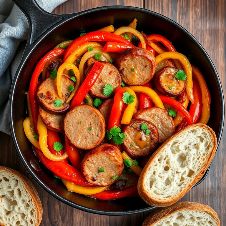 Ein deftiges Pfannengericht, das die Würzigkeit der Fleischwurst mit süßen Paprika und Zwiebeln vereint. Schnell zubereitet und perfekt für ein herzhaftes Abendessen, bringt dieses Gericht klassische deutsche Hausmannskost auf den Tisch. Die Kombination aus gebratener Fleischwurst, saftigen Paprikastreifen und goldbraunen Zwiebeln sorgt für ein aromatisches Geschmackserlebnis.