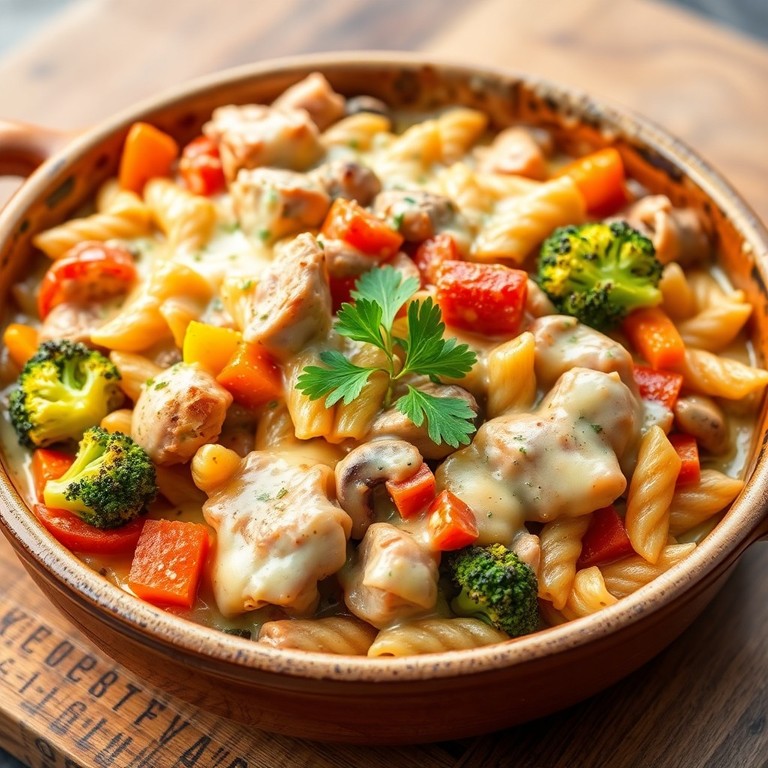 Ein herzhafter und gesunder Auflauf, der mageres Schweinefleisch mit einer bunten Mischung aus frischem Gemüse und ballaststoffreichen Vollkornnudeln kombiniert. Abgerundet wird das Gericht mit einer leichten Käsealternative, die dem Auflauf eine cremige Textur verleiht, ohne zu schwer zu sein. Ideal als ausgewogenes Mittagessen, das sowohl sättigend als auch nährstoffreich ist.