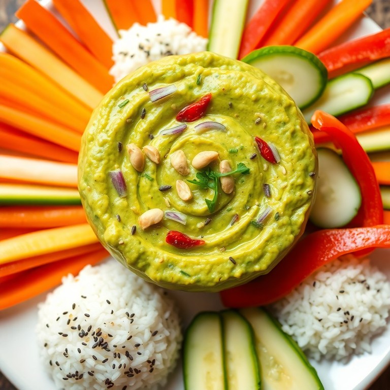 Ein frischer, würziger Dip, der die cremige Textur klassischer Guacamole mit exotischen Aromen der thailändischen Küche verbindet. Perfekt als Apero oder Snack, serviert mit knusprigem Gemüse und einem kleinen Reisbuffet. Die Kombination aus Limette, Koriander, Chili und Erdnuss sorgt für ein einzigartiges Geschmackserlebnis.