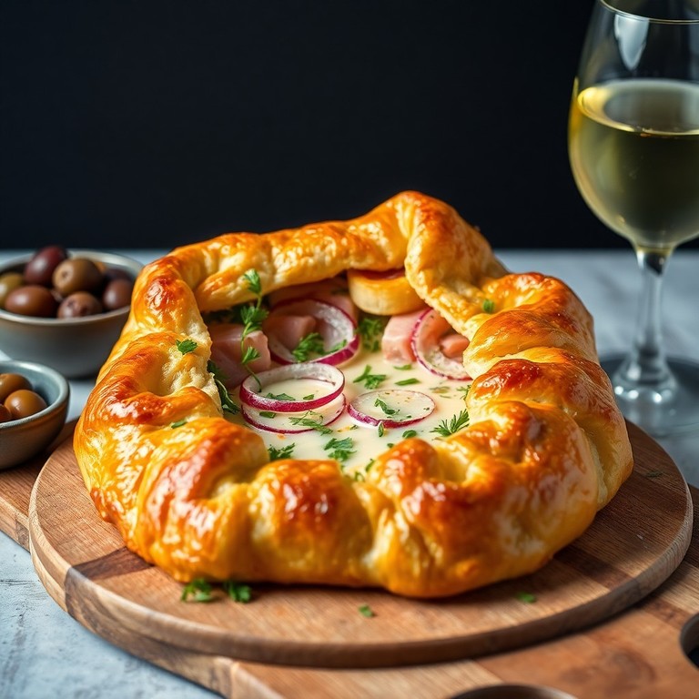 Rustikale Blätterteig-Galette mit Kräutern und Schinken