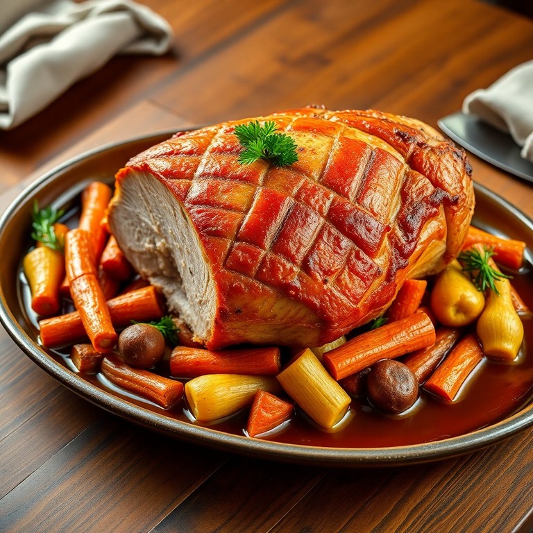 Ein traditioneller litauischer Schweinebraten, langsam im Ofen gegart und mit herzhaftem Wurzelgemüse serviert. Dieses Gericht vereint zartes Schweinefleisch mit aromatischen Wurzeln wie Karotten, Pastinaken und Sellerie – ein Festessen, das in Litauen zu besonderen Anlässen und in der Familie besonders geschätzt wird. Die kräftigen Aromen und die rustikale Präsentation machen diesen Braten zu einem Highlight der litauischen Hausmannskost.