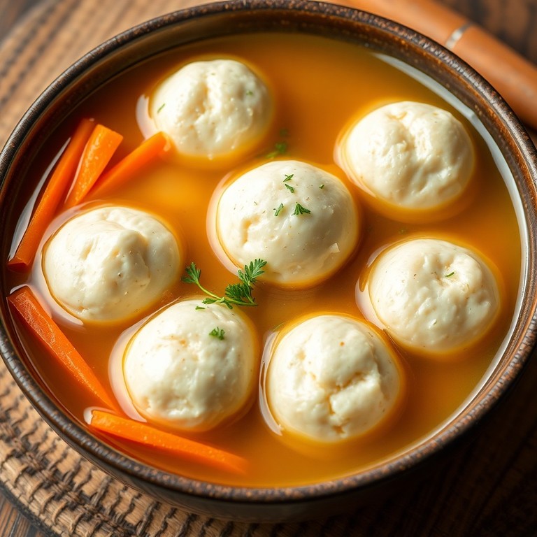 Diese traditionellen jüdischen Passahbällchen, auch Kneidlach genannt, sind zarte Klöße aus Matzenmehl, die in aromatischer Hühnerbrühe gekocht werden. Sie sind ein klassisches Gericht der israelischen und aschkenasischen Küche, besonders beliebt zu Pessach. Frische Kräuter und Gewürze verleihen den Bällchen eine feine Note, während die Brühe für Wärme und Wohlbefinden sorgt.
