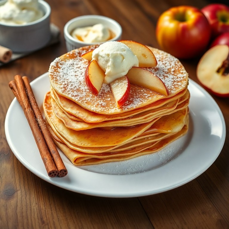 Dünne, goldene Pfannkuchen nach niederländischer Art, gefüllt mit karamellisierten Äpfeln und Zimt. Perfekt als süßes Frühstück oder als Dessert, einfach zuzubereiten und herrlich aromatisch.